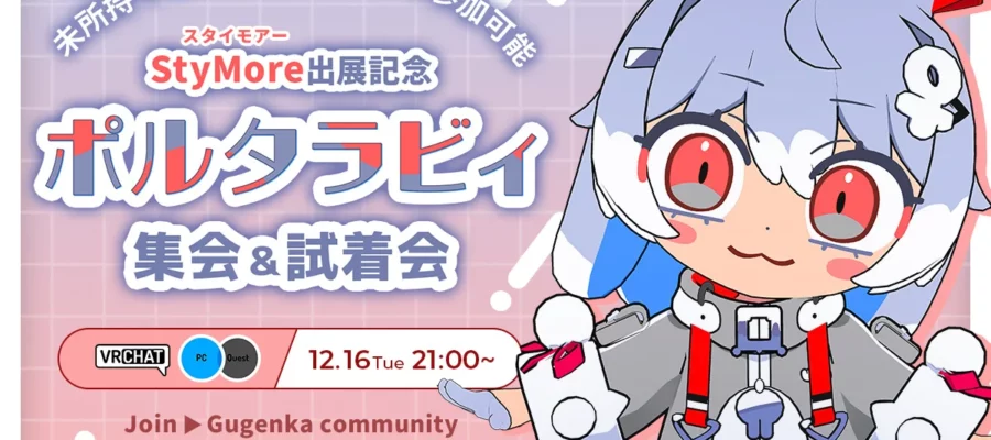 株式会社Gugenka 株式会社Gugenka(代表取締役CEO 三上昌史)は、人気イラストレーター・寺田てら先生の StyMore出展を記念して、VRChat内イベント「ポルタラビィ集会&試着会」を2025年12月16…