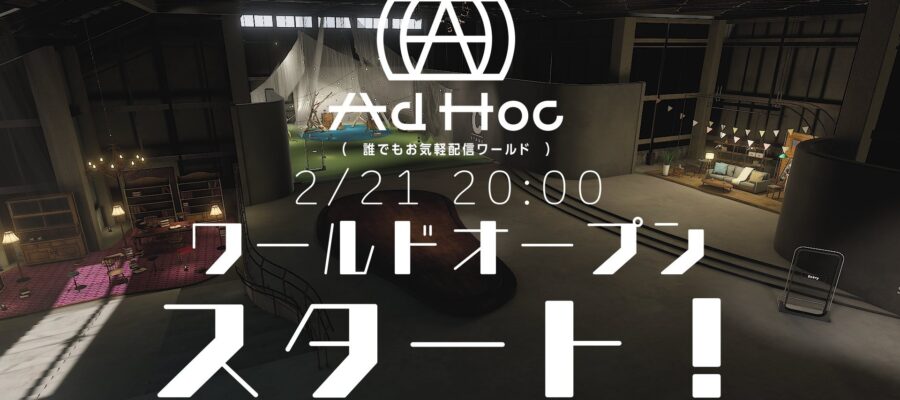 RIOT MUSICは、VRChat内で配信・収録ができるワールド「AdHoc」を2月21日20時から公開すると発表した。 株式会社RIOTMUSICが管理するワールドとなっており、個人・法人問わずに配信(ライブ配信)、…