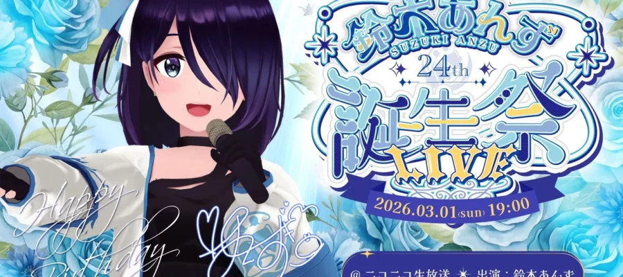 株式会社ドワンゴ ニコニコ事業本部 2026年2月25日(水)に24歳の誕生日を迎えた、VRアイドル「えのぐ」メンバーの鈴木あんず(読み:すずき あんず)の誕生日を記念したソロライブ「鈴木あんず24th 誕生祭 LIVE…