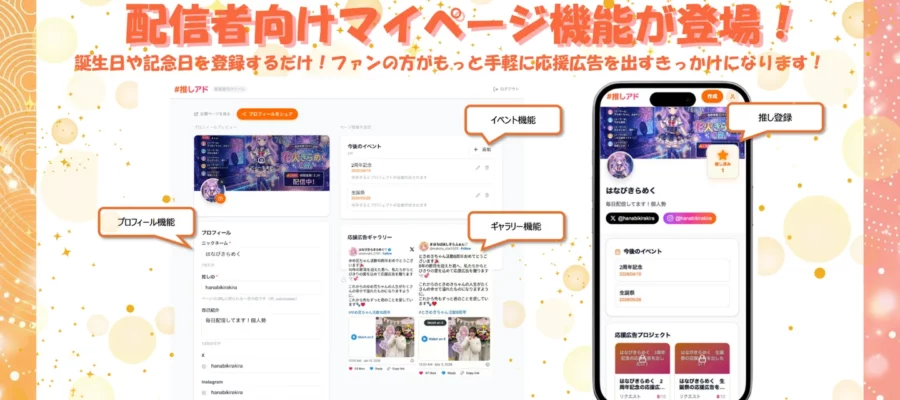 株式会社Curio リリースの背景 近年、ライブ配信やVTuberの市場は急速に拡大し、ファンが活動者の誕生日や記念日を祝う「応援広告(センイル広告)」の掲出も増えてきています。しかし、特に個人で活動する配信者やVTub…