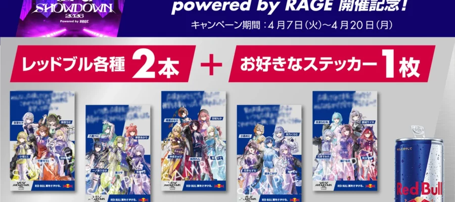 レッドブル・ジャパン株式会社 レッドブル・ジャパン株式会社は、4月7日(火)~4月20日(月)の期間にローソン限定で VSPO! SHOWDOWN 2026 powered by RAGE 開催記念として次世代 Vir…