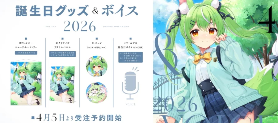 アナログ 2026年4月5日(日)~2026年5月5日(火)23時59分までの期間、ハコネクト公式BOOTHにて『ミラ・ルプス誕生日グッズ&ボイス』を販売いたします。 ■『ミラ・ルプス誕生日グッズ&ボイス…