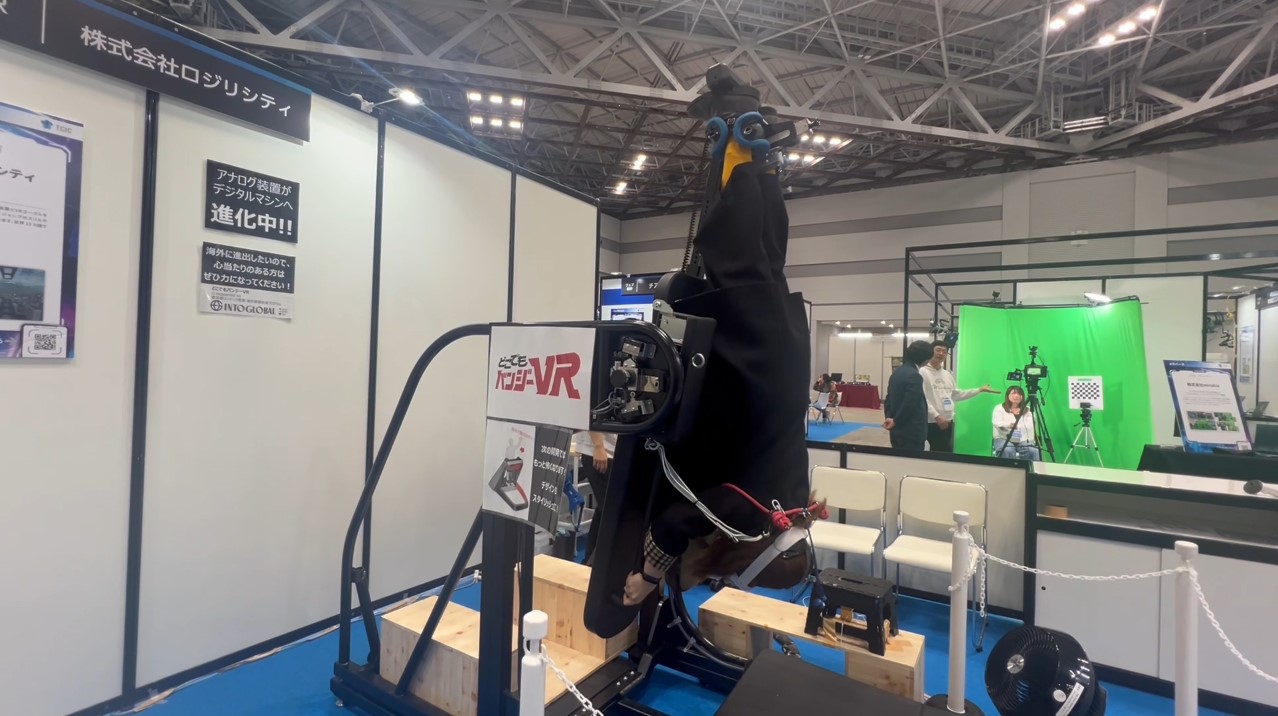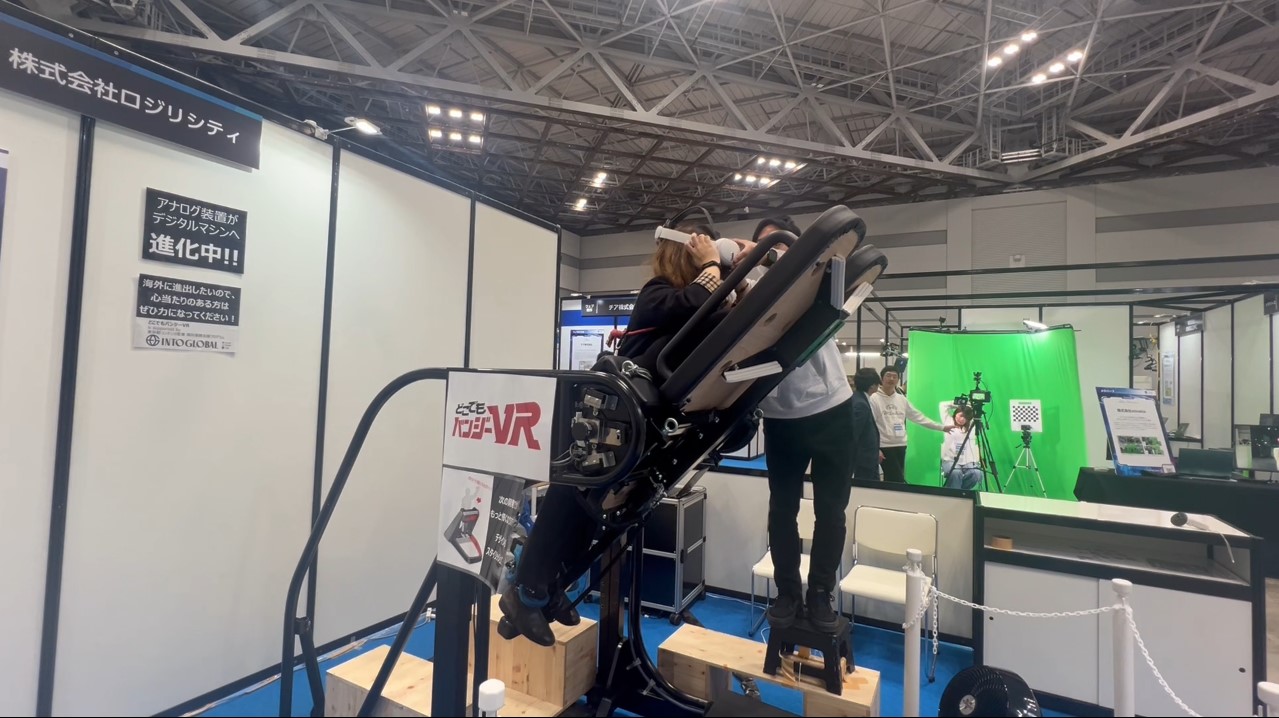 会場内でひときわ目立っていたのが「バンジーVR」。VRゴーグルと専用器具で、都庁の上からバンジージャンプをする感覚を再現する体験は、実際に半回転して逆さまになるという鮮烈な体験から、ほとんどの体験者が叫んだり、恐怖から笑ってしまうというのが印象的だった。