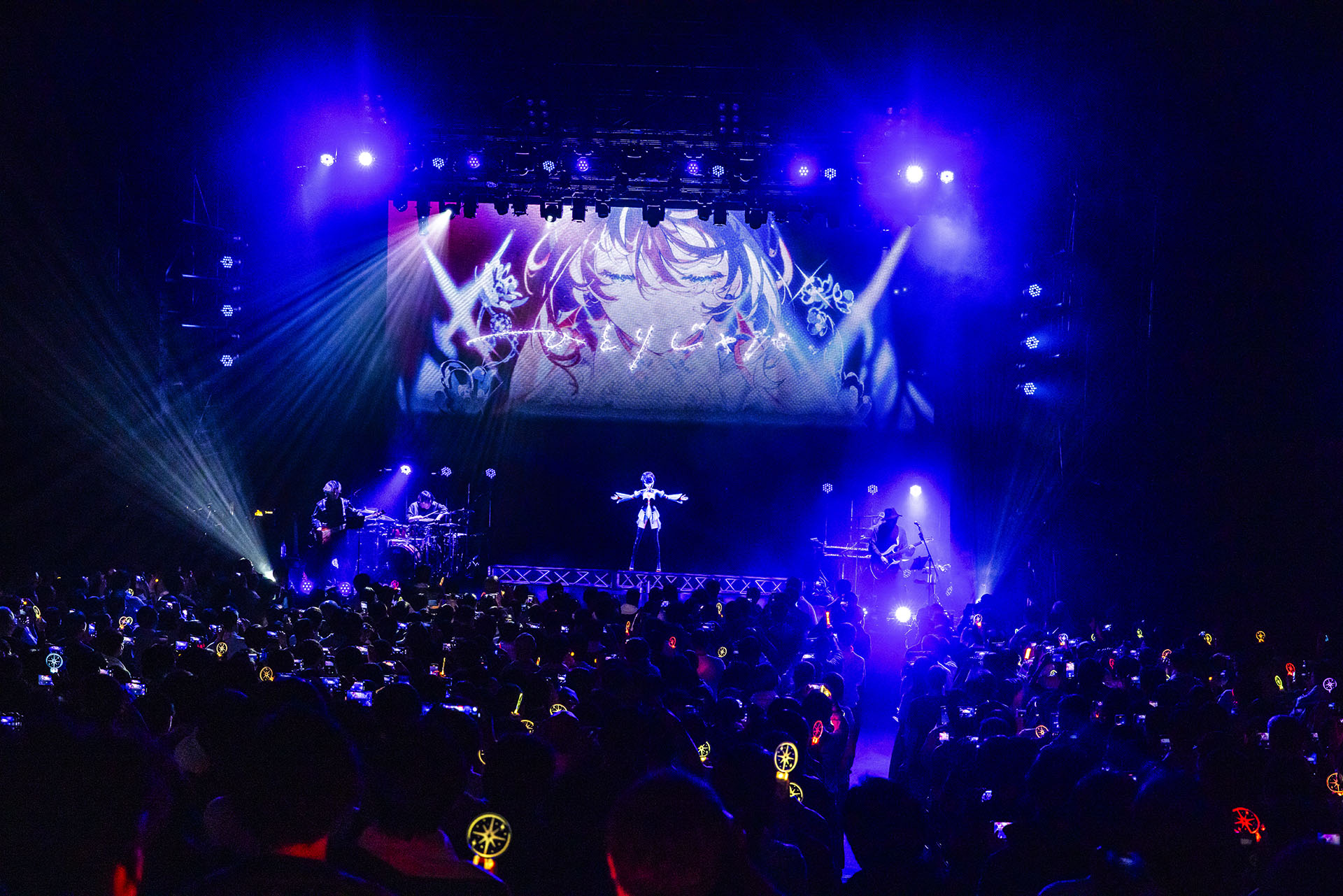 そう語って、この日最後となる新曲「Aster」を歌い始める。幻想的なイントロから明透のクリーンな声色へと繋がり、バンド隊が徐々に盛り上がっていく流れは、ドラマティックかつ壮大。配信ライブでは空に流星が流れていく表現がなされ、自身の感覚を銀河や宇宙へと繋げていくかのようなスケールの大きさ・広さを感じさせてくれた。