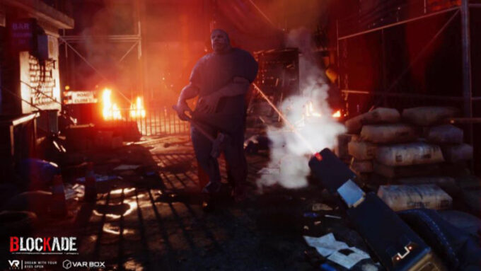フィールドを自由に歩き回る「INFINITY WARS」に対して、「VAR BOX」は、筐体の前で立ったままプレーするVRシューティングゲーム。アトラクション型の「JURASSIC:NEW ERA」「BLOCKADE」と、eSports特化型の「OVER KILL」「DOUBLE TAP」という4種類のゲームを楽しめるのだが、内覧会では、アトラクション型の2タイトルを体験した。