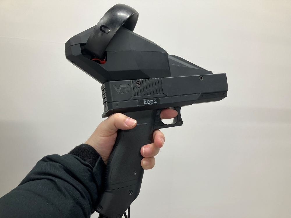 HMDとガンコントローラーで遊ぶのは、「INFINITY WARS」と同じだが、実銃を元に設計されたというガンコントローラーはずっしりと重い。しかも、ゲームが始まって引き金を引くと、しっかりとした反動が手に伝わってくる。