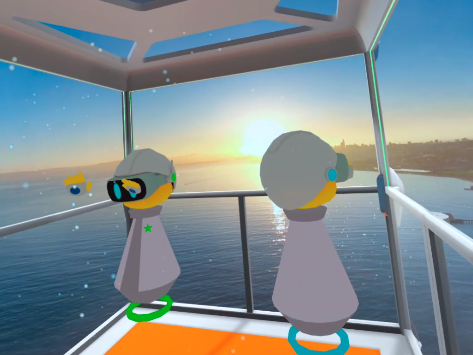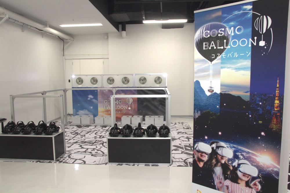 「COSMO BALLOON」は、気球に吊されたゴンドラに乗って世界の絶景を旅するVRアトラクション。最大8人まで同時に体験できる「フリーローム型VR」で、プレーエリアに入ってHMDを装着すると、自身も周りの同行者もてるてる坊主のような可愛いアバターとして表示。ゴンドラの中は、自由に移動でき、好きな場所から眼下の絶景を堪能できる。家族、友人、恋人など親しい誰かと一緒に乗ると、より一層楽しめるだろう。