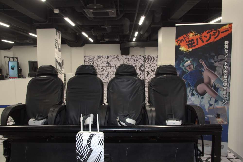 「ウルトラ逆バンジー」は、ビル街に設置された特別なバンジー台で、地上からはるか上空へと飛ばされる絶叫系VRアトラクション。HMDで見るVR空間の360度映像と、映像に合わせて揺れ動く劇場用MX4Dシートのさまざまな演出により、成層圏を突き抜けるほどの浮上など、現実の絶叫マシンでは絶対に実現できない体験ができる。実は筆者は、幼児向けのジェットコースターでさえ大の苦手。特に落下移動が苦手で、そのタイプの絶叫系アトラクションに乗ったことはほとんど無いのだが、今回、取材のために渋々体験することになった。