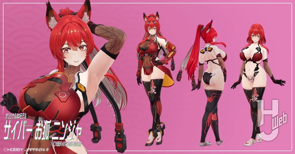 サイバーお狐ニンジャはイラストレーター・Niθ氏がデザインするVRアバター。アーマーの発光や武装の着脱など3Dモデルならではのギミックも搭載されている。髪型や胸部のサイズなどをユーザーの好みに合わせて、ワンタッチでカスタマイズも可能となっている。