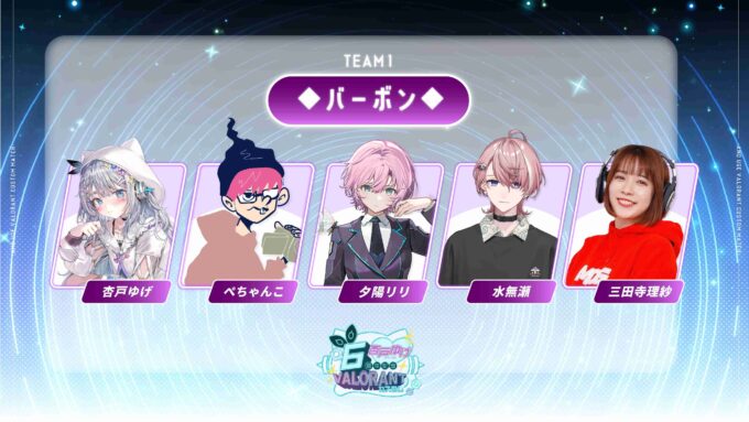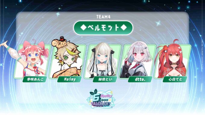 ちなみに今回は5人組4チームの計20人が参加しているが、 杏戸ゆげがお酒好きということもありチーム名がバーボン、ウォッカ、ジン、 ベルモットとすべて洋酒になっている。