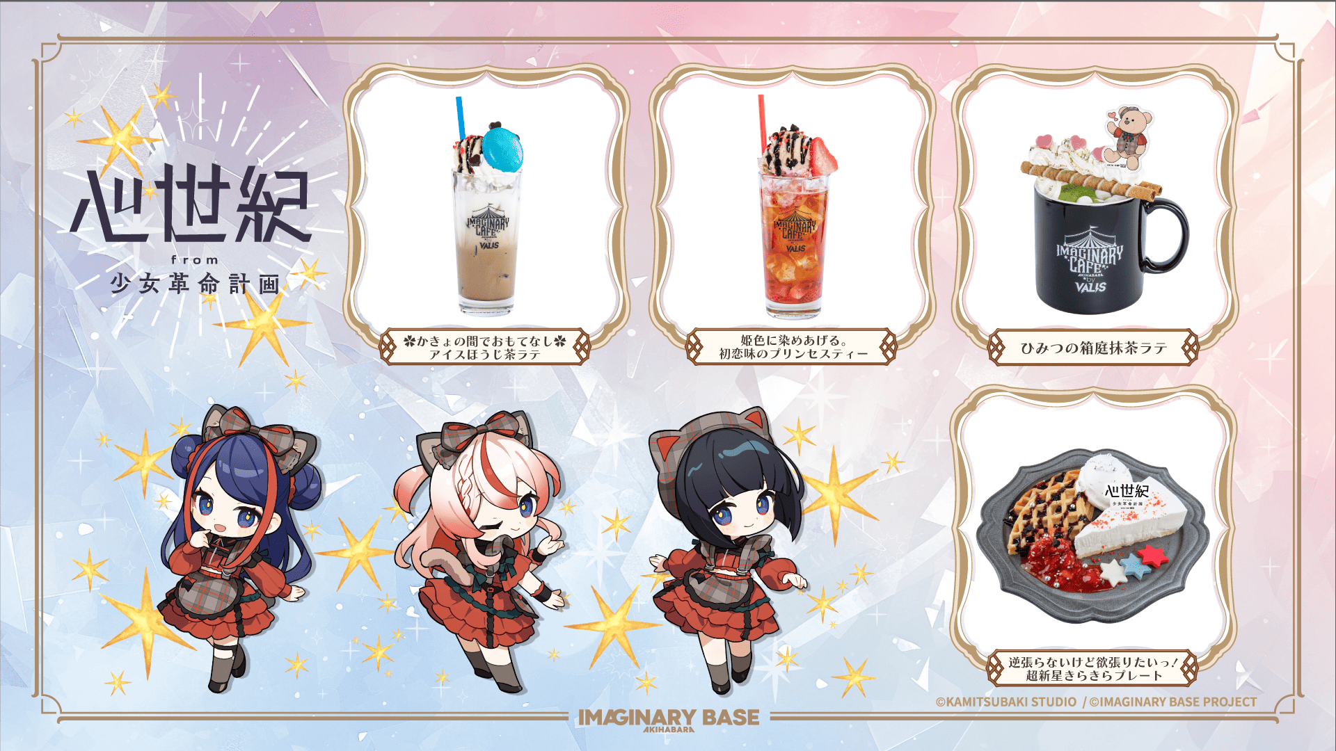 KAMITSUBAKI STUDIOは28日、バーチャルガールズユニット・VALISがアイコンを務めるギャラリー併設型カフェ「IMAGINARY BASE AKIHABARA」での初のコラボイベントとして、「少女革命計画」コラボの開催を発表。