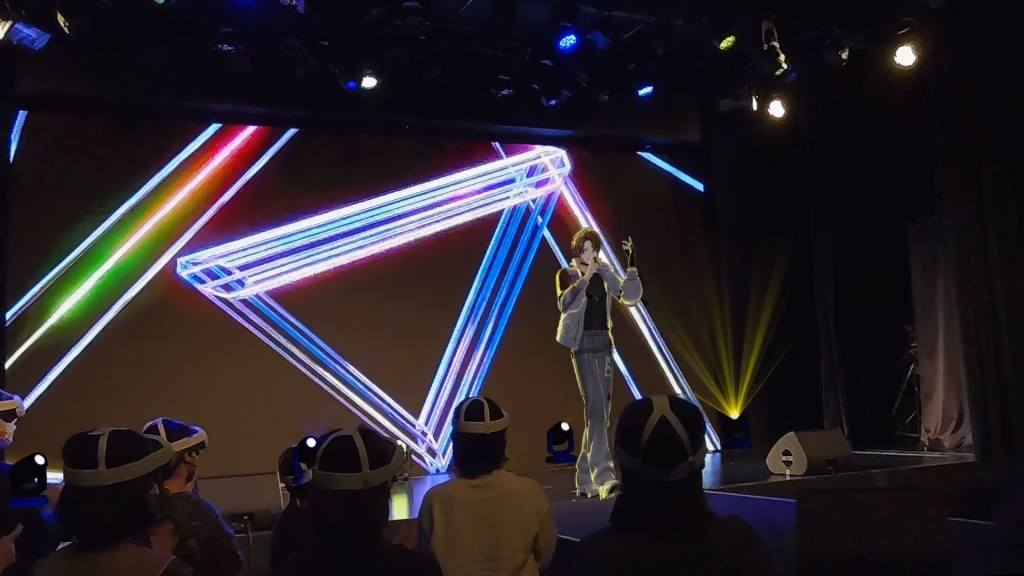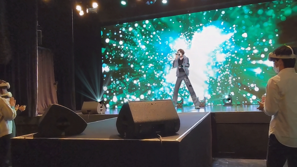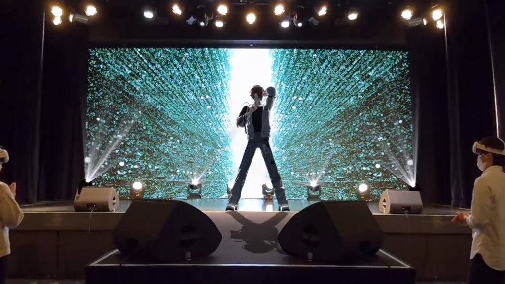 プレスリリースによると、このライブも新開発された技術の成果。「ライブイベントを想定した(実写とCGの)合成を行うためには、ステージ美術とキャラクターの前後関係を正確に表現しながら、リアルタイムの照明演出を反映させる必要があります。しかし、従来のAR/MR技術ではこの表現が困難」だったということで、「Meta Quest3の基本機能をベースにした新たな機能を開発し、物理空間と音・照明が連動したVTuber専用のMR合成システムを開発」したそうです。