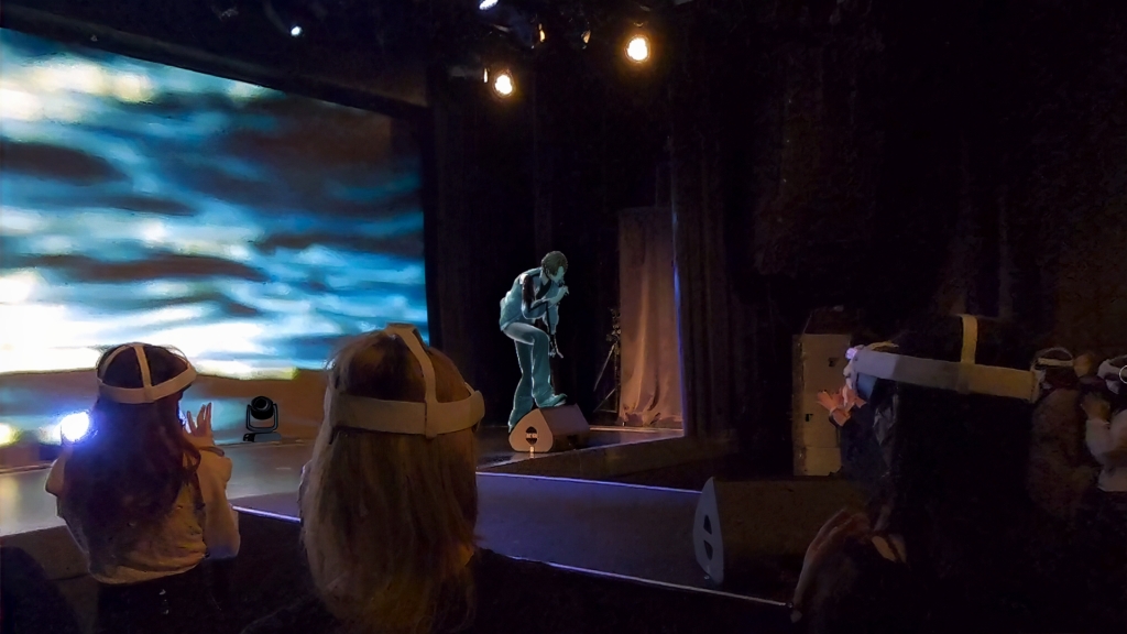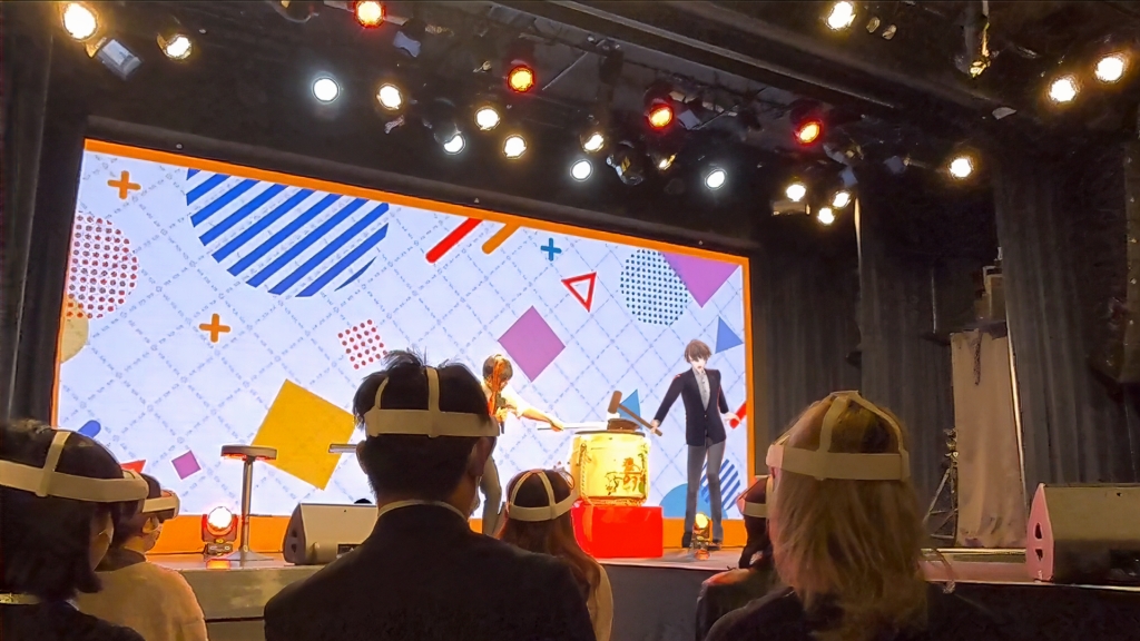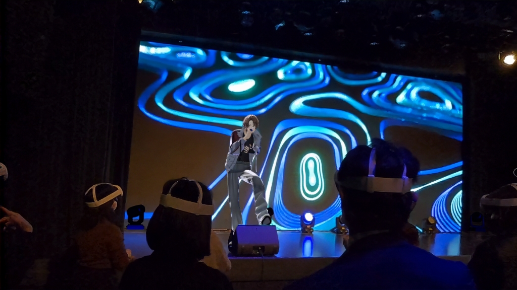 今回の「実証実験イベント」の1公演20名というキャパシティは、短時間ですべてのお客さんにヘッドマウントディスプレイを正しく装着させることなどイベント運行上の上限だったのか、リアルタイムMRライブの安定したデータ配信を実現する上での技術的上限だったのかは、分かりません。