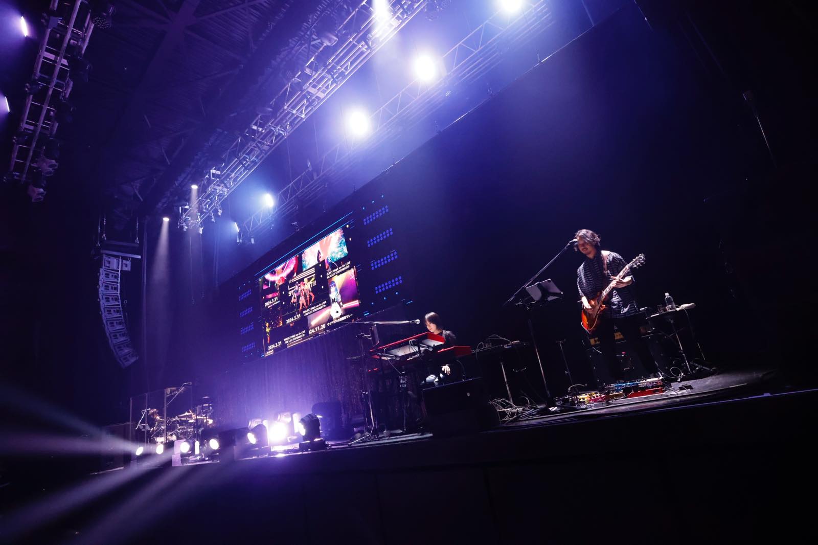 フロアからのアンコールの声があがると、それに応えるようにまずは3名が所属する事務所・876プロの石川実社長がスクリーンに登場。プロジェクト立ち上げから2年でZepp公演ができたことに「プロジェクトの進捗はきわめて順調よ」と、プロデューサーの手腕に感謝を告げた。