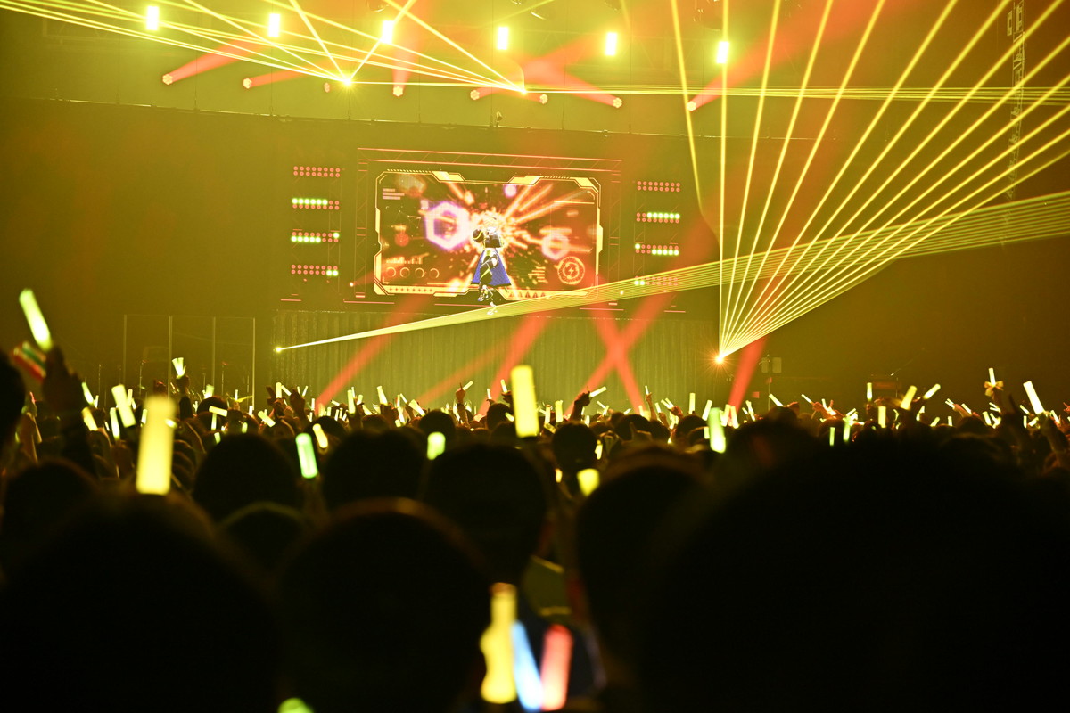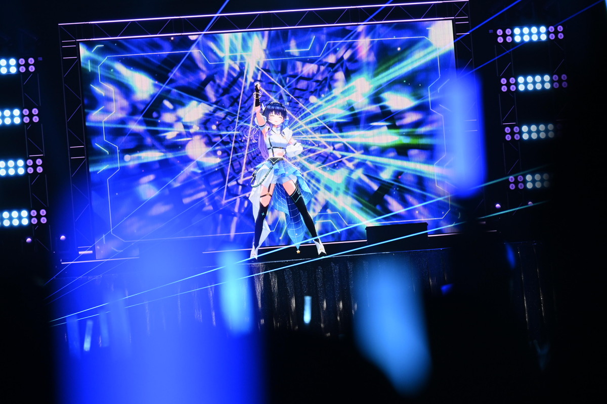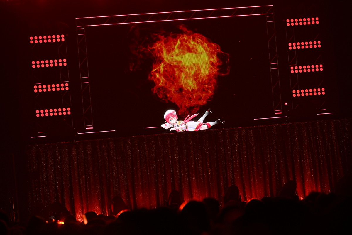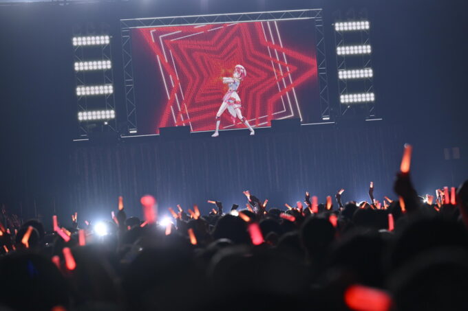 魔法少女もののアニメをイメージしたこの曲では、殺陣を彷彿とさせるキレのある振りを見せてくれる。特に曲の後半では彼女が剣を振るとステージ後ろのモニターの背景にもエフェクトが現れ、まさに上水流宇宙ショウがそこに出来上がっていた。