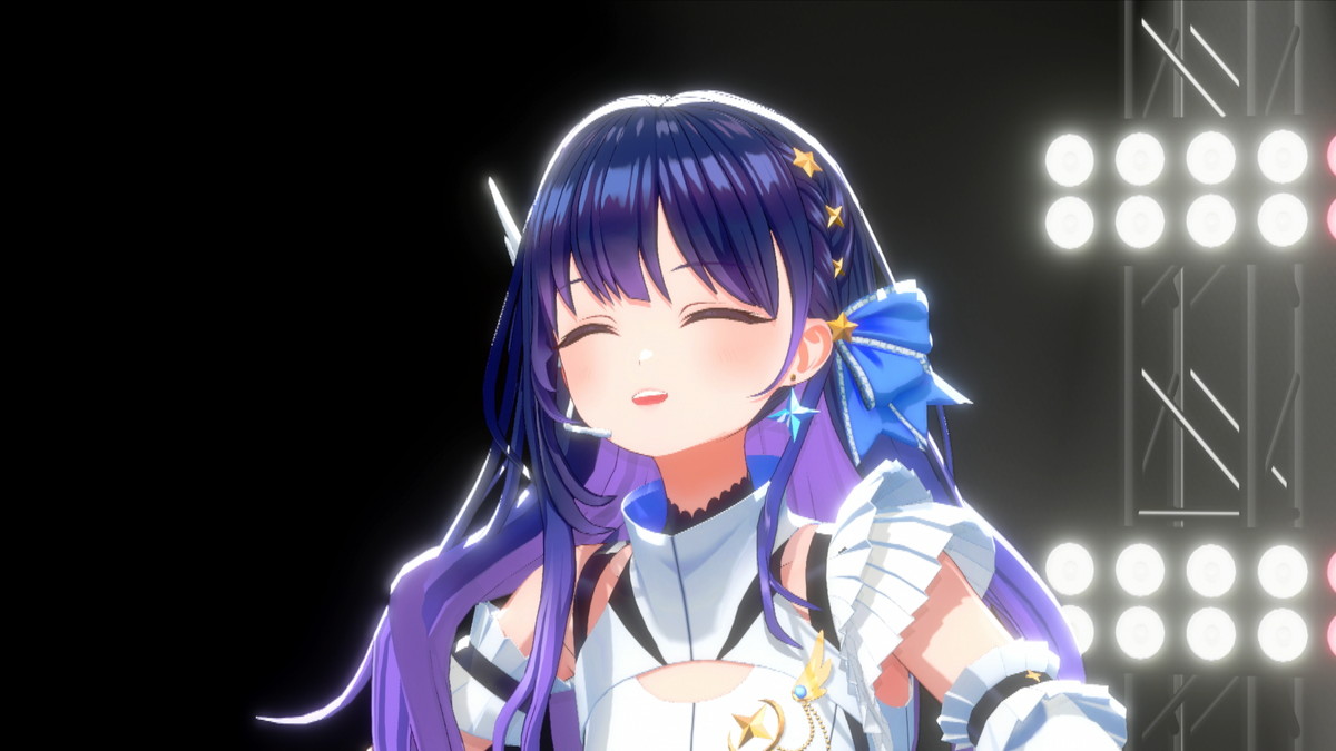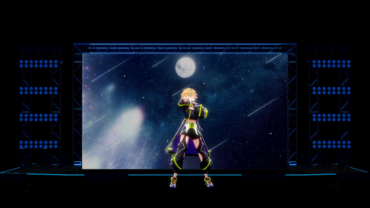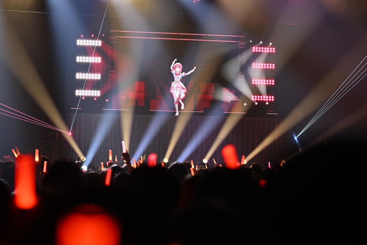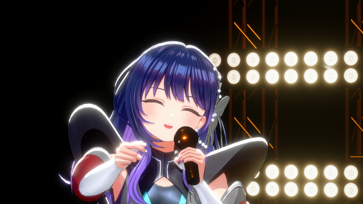 魔法少女もののアニメをイメージしたこの曲では、殺陣を彷彿とさせるキレのある振りを見せてくれる。特に曲の後半では彼女が剣を振るとステージ後ろのモニターの背景にもエフェクトが現れ、まさに上水流宇宙ショウがそこに出来上がっていた。
