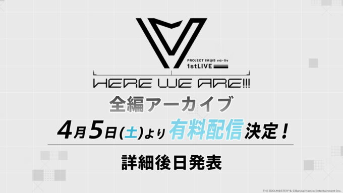 2025年3月22日(土)、Zepp DiverCity TOKYO(東京都)にて、「アイドルマスター」シリーズを手掛けるPROJECT IM@Sによるアイドルプロジェクト「PROJECT IM@S vα-liv」(以下、ヴイアライヴ)初の現地有観客ワンマンLIVE、「PROJECT IM@S vα-liv 1stLIVE -HERE WE ARE!!!-」が開催された。