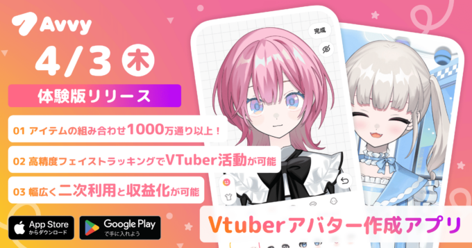 AnotherBallは3日、VTuberアバター作成・配信アプリ「Avvy(アビィ)」の体験版をリリース。