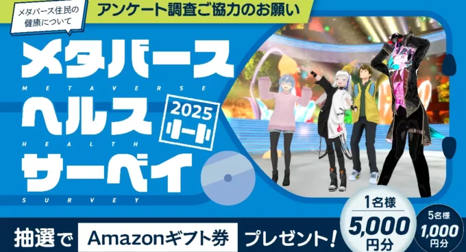 メタバース医療協創ラボは5日、メタバースユーザーの健康実態を明らかにするため、「メタバースヘルスサーベイ2025」の始動を発表(回答フォーム)。本研究は三重大学の百崎教授を研究責任者とし、メタバースユーザーの健康状態や生活習慣を分析することを目的としている。メタバース人口が増加する一方で、長時間のオンライン活動による健康リスクが懸念されており、その実態を科学的に解明するための重要な調査とのこと。