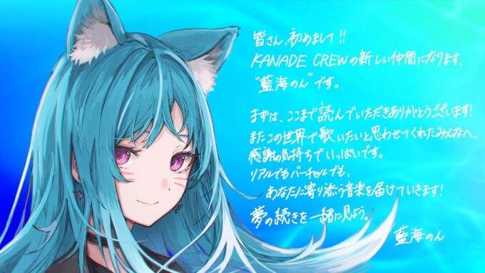音楽レーベル・Acro-musicに所属する奏みみの運営チーム・KANADE CREWより、新人パラレルシンガー・藍海(あおみ)のんがデビューした。2025年4月12日、奏みみのバースデーライブにてデビューが発表された。
