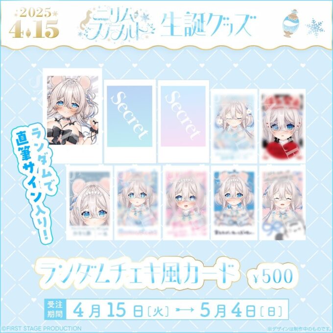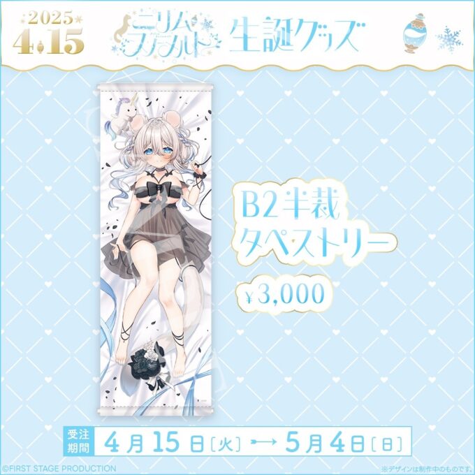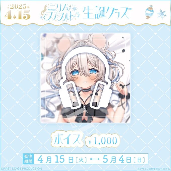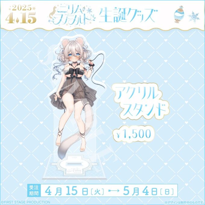 FIRST STAGE PRODUCTION 4期生 ニリム・スノーメルトが、自身の生誕記念となるグッズの受注販売をスタートさせた。販売期間は4月15日から5月4日までとなっている