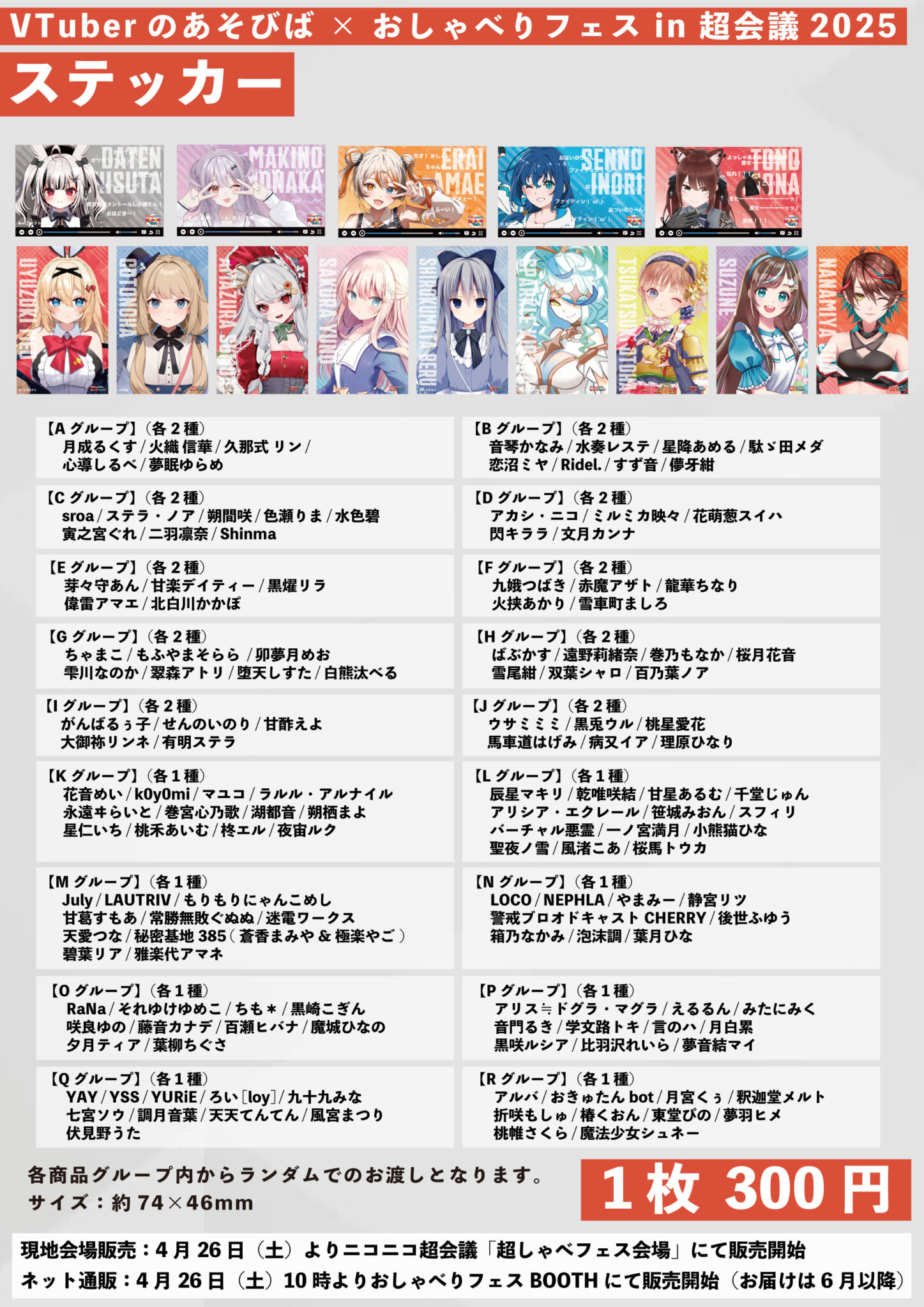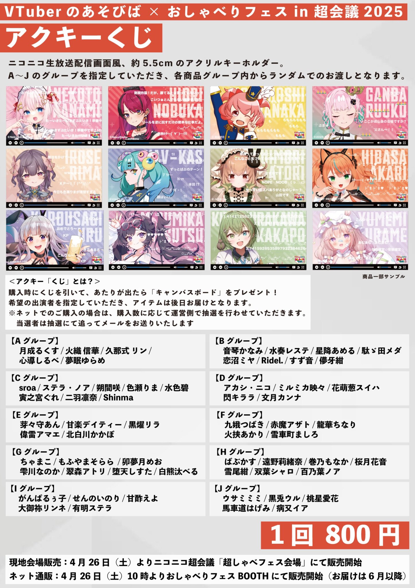 イベントといえば……物販も楽しみの一つ! 会場では、「アクキーくじ」と「ステッカー」をご用意し、グループごとのランダム販売となっております。さらにアクキーでは、購入時に引くくじに当たるとキャンバスボードを後日郵送にてプレゼントします。
