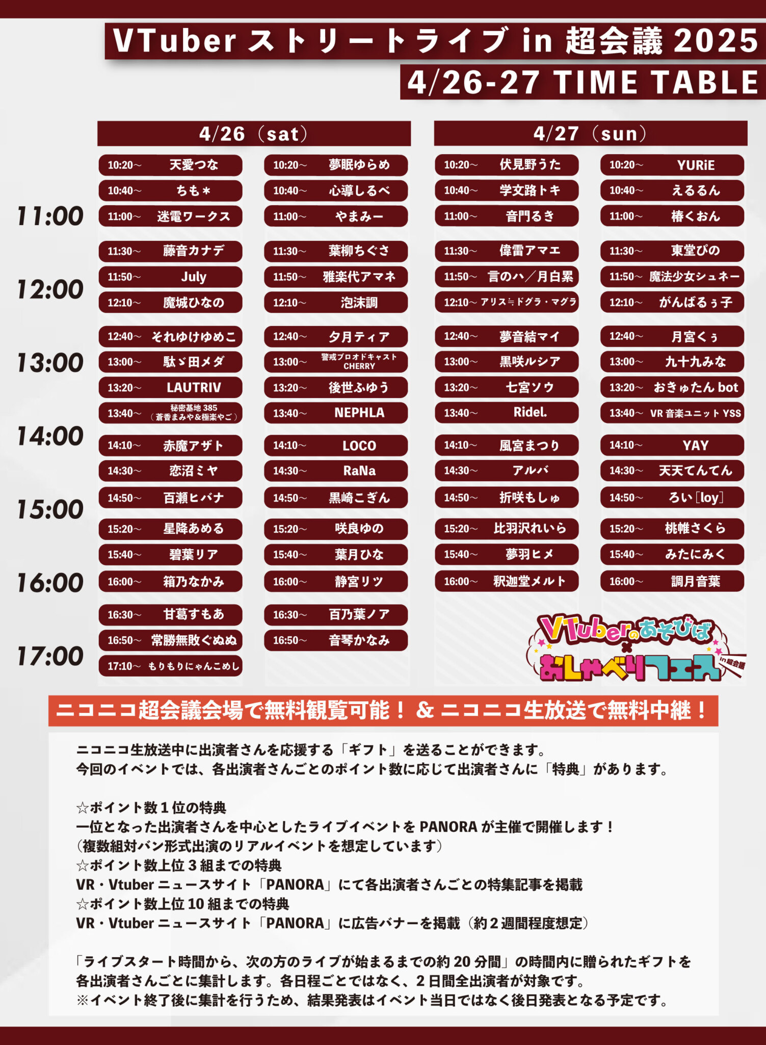 毎年、4月末の風物詩といえば、ネット文化が一堂に揃うイベント「ニコニコ超会議」。PANORAとドワンゴは、今年も「VTuberのあそびば × おしゃべりフェス in 超会議2025」(超しゃべフェス)を共催します。ブースの場所はホール2です。