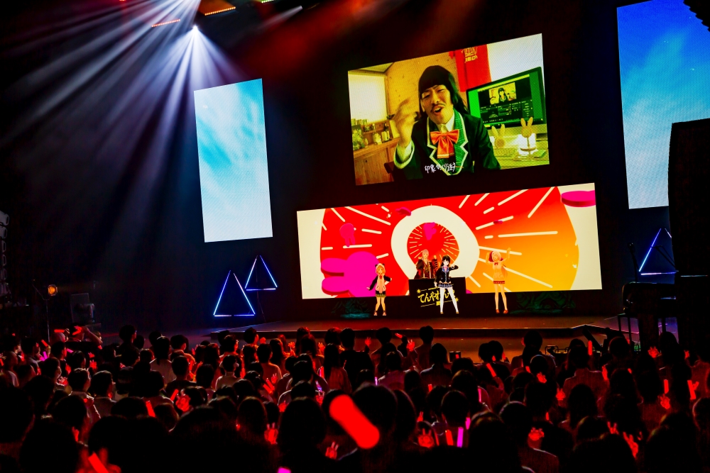 そして、この3人がステージに揃えば、次に披露されるのは当然、衝撃の実写男性コスプレMVで話題を集めた「てんやわんや、夏。」。作曲者の弦月藤士郎さんもDJとして登場するスペシャルバージョンだ。