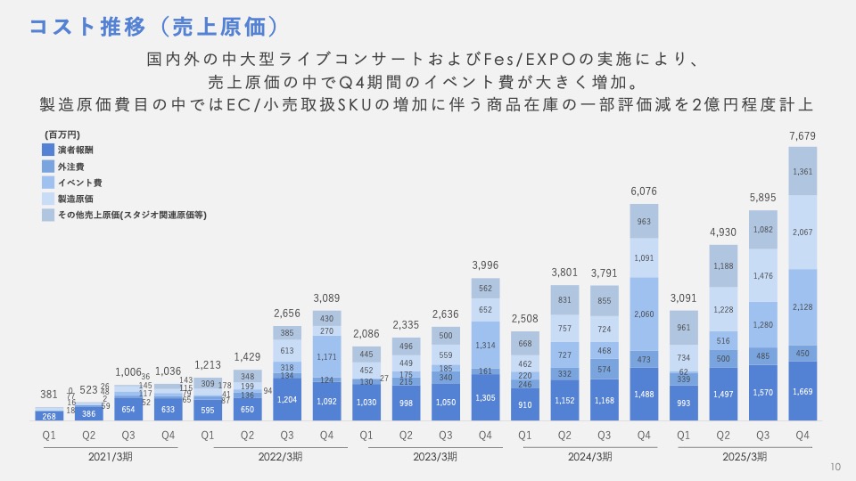 興味深いところでは、コストの「演者報酬」で2025年3月期は57億2900万円費やしていることがわかる。ぜひ決算資料を読み込んでみよう