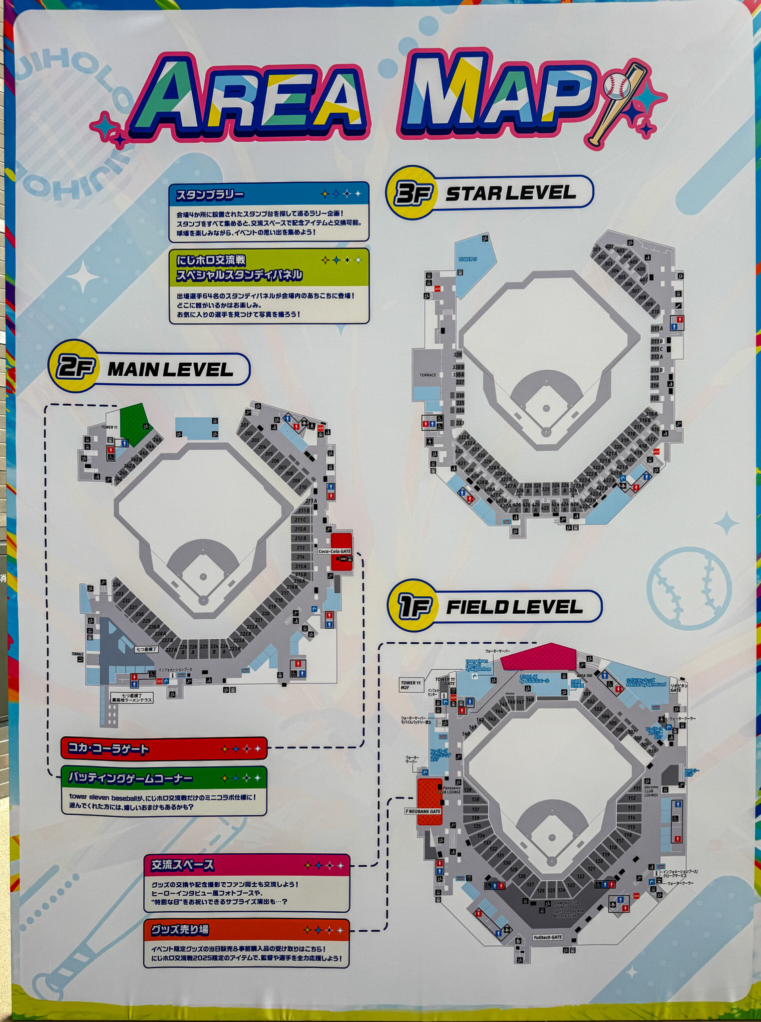 参加選手のポップがあらゆる場所に配置されているのも特徴的でした。撮影するために歩いていると、エスコンフィールド北海道をぐるっとまわることになるため、必然的に「野球場」の面白さが多角的に見えてきます。階ごとの席から見える景色に気づきやすい導線がこのポップによって作られていました。