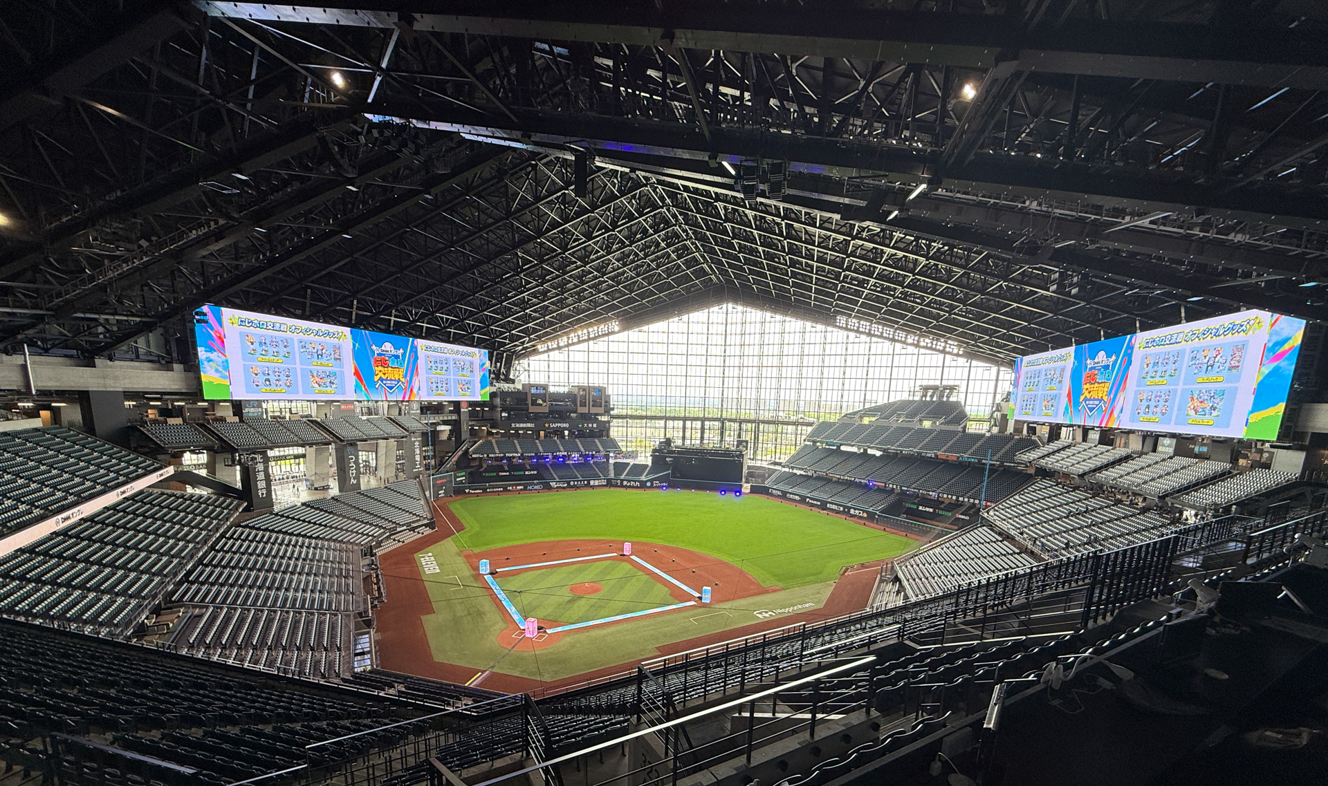 ゲーム内で使われていたスタジアムがエスコンフィールド北海道で、見た目が完全に同じなため、巨大ビジョン内で行われている試合を見続けていると、本当に現地で選手が激闘しているような錯覚に襲われると思います。