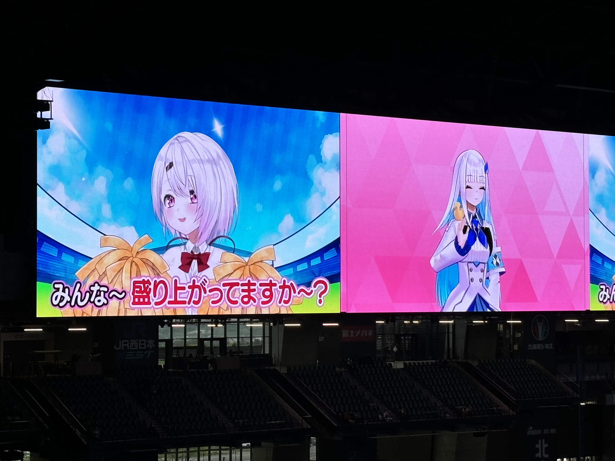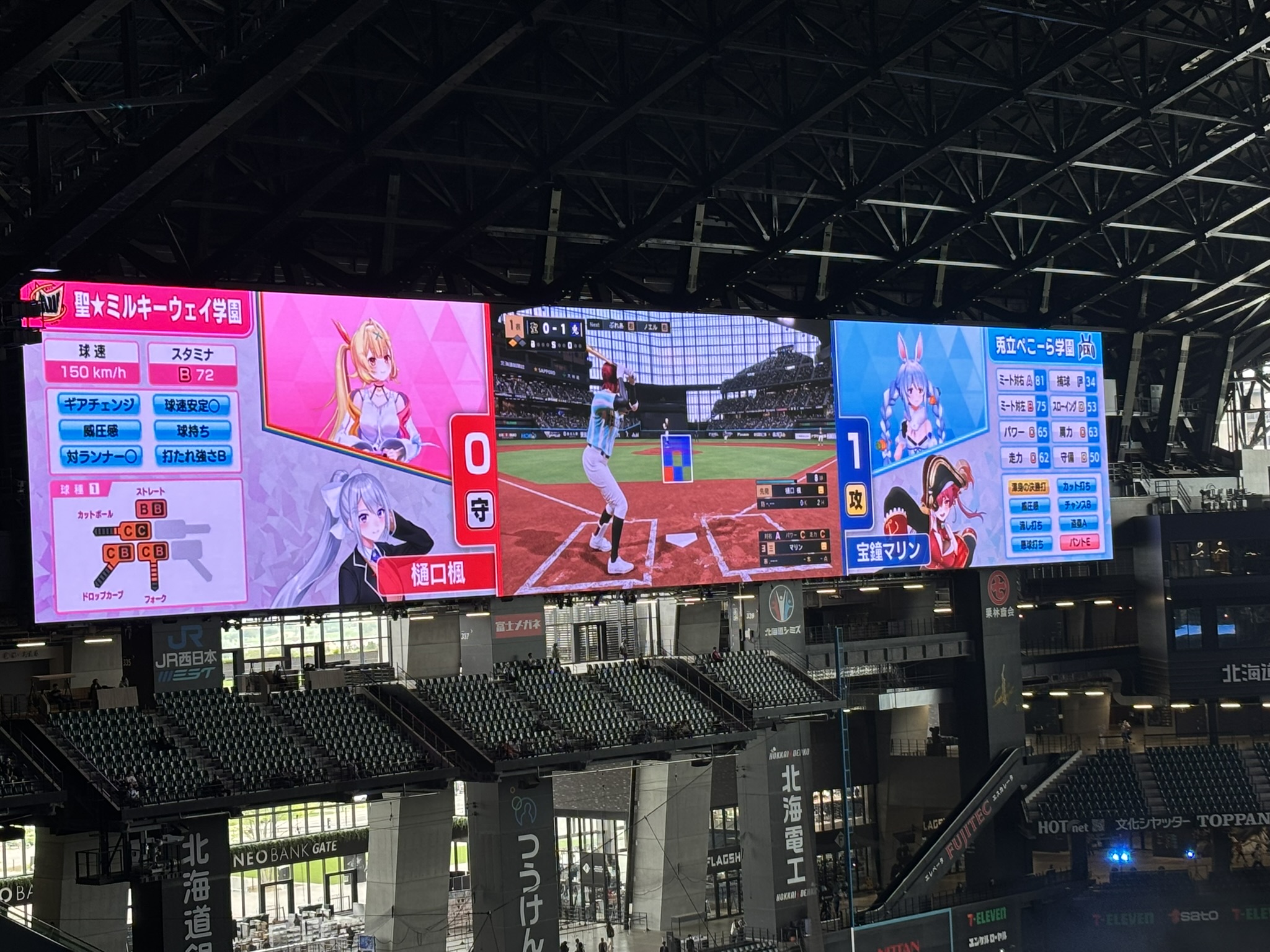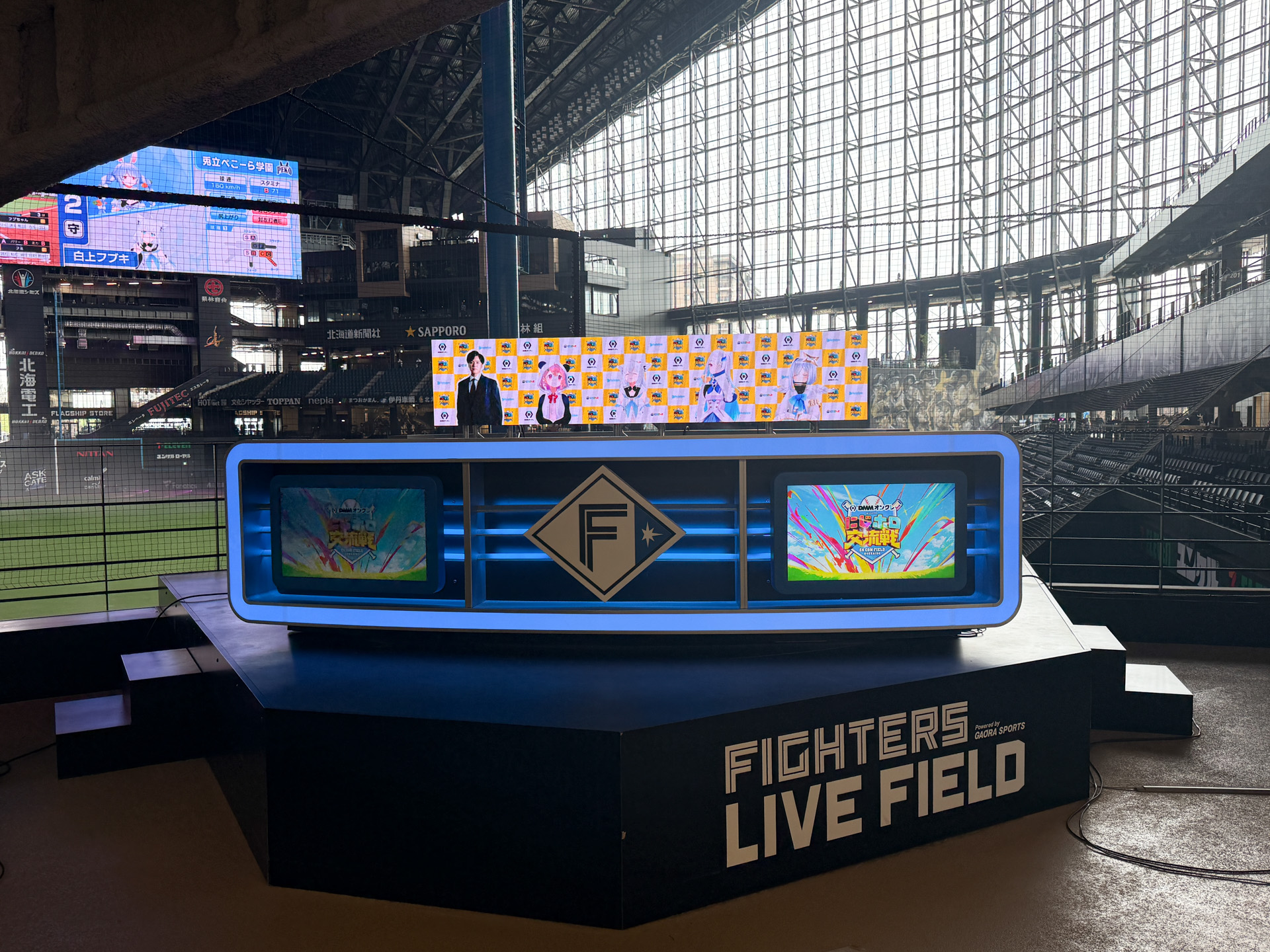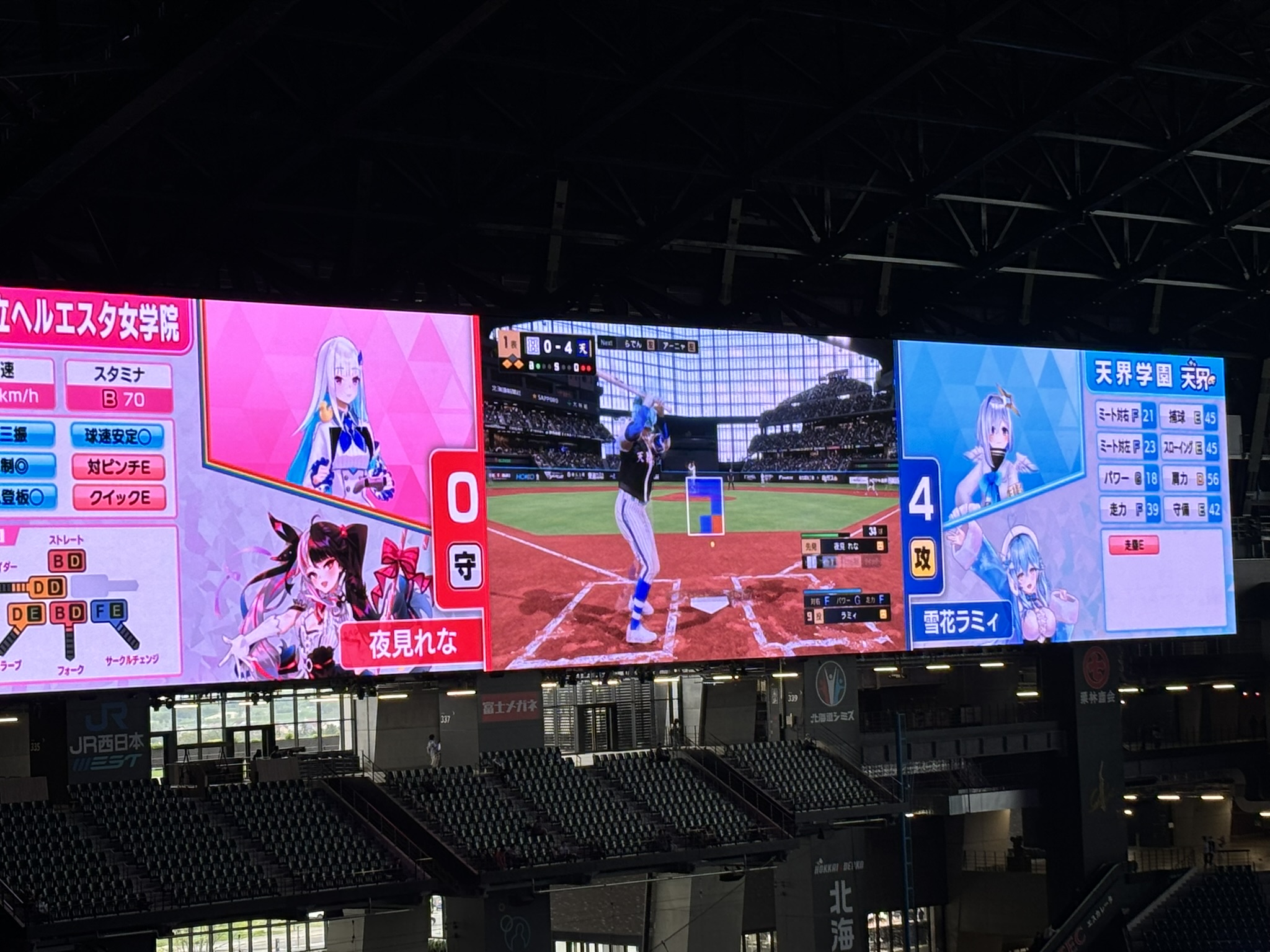 一体、広大なエスコンフィールドでゲームを対戦する様子をどうやって見せるのか。そもそも、バーチャルの存在がゲーム実況している様子をこんな大きな会場でみんなで眺めて楽しいのか。