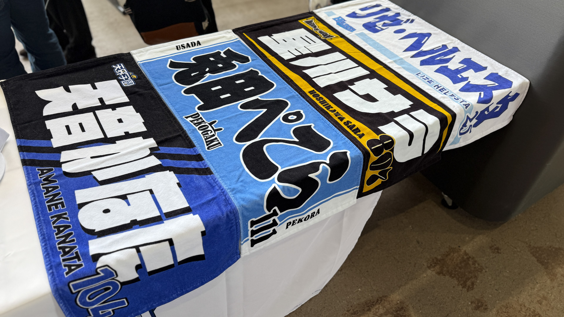 グッズとしてチームキャップ、チームTシャツ、ユニフォーム風チームシャツ、監督たちのタオルが売っているのはパッと見てわかりますが、実はTシャツとタオルに関しては選手個別のものが用意されています。
