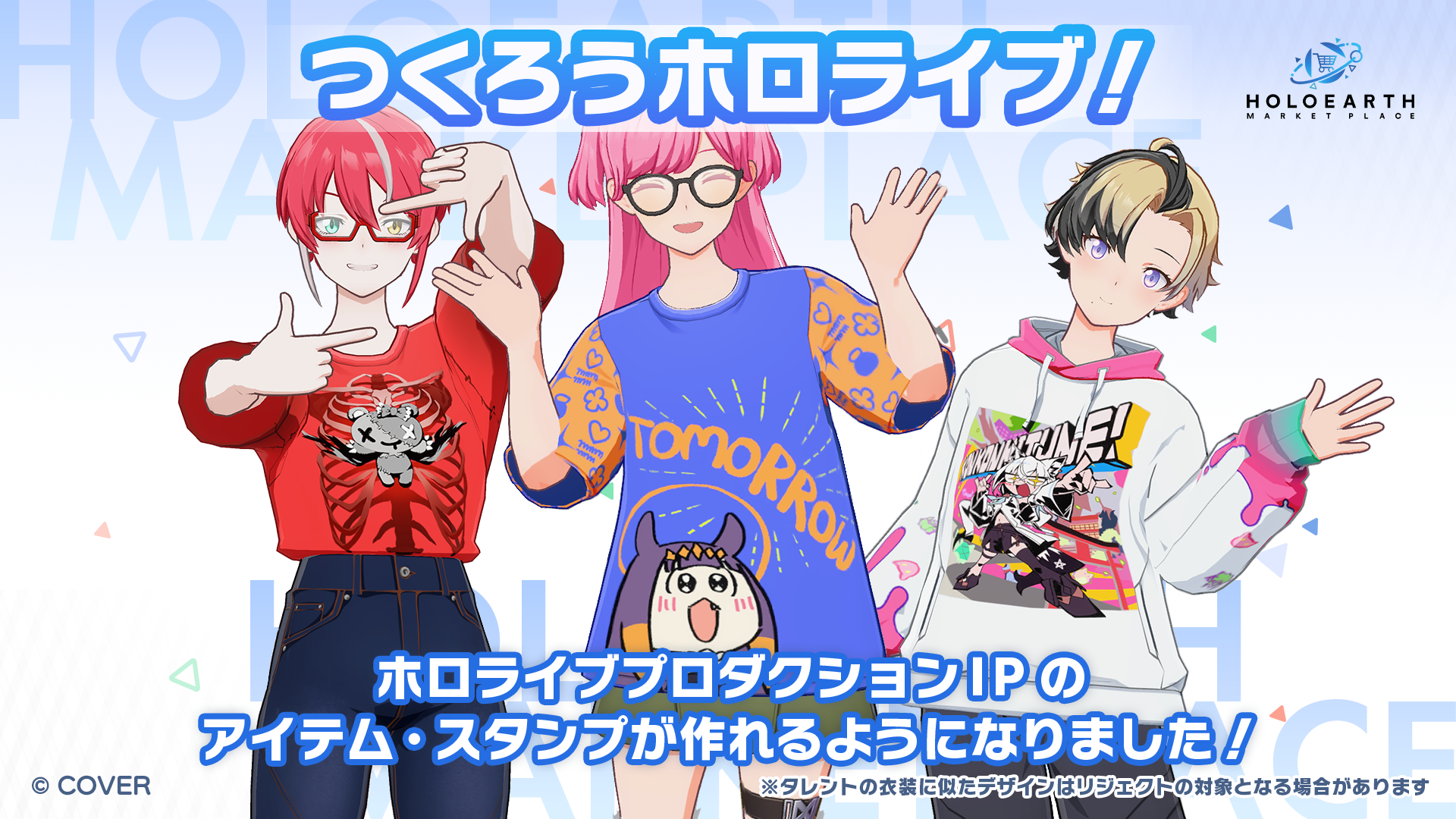 2025年5月22日より、ホロアースマーケットプレイスにて「ホロライブプロダクション」ライセンスを使用してのアイテム作成が可能となった。従来通りアイテムの審査あり。