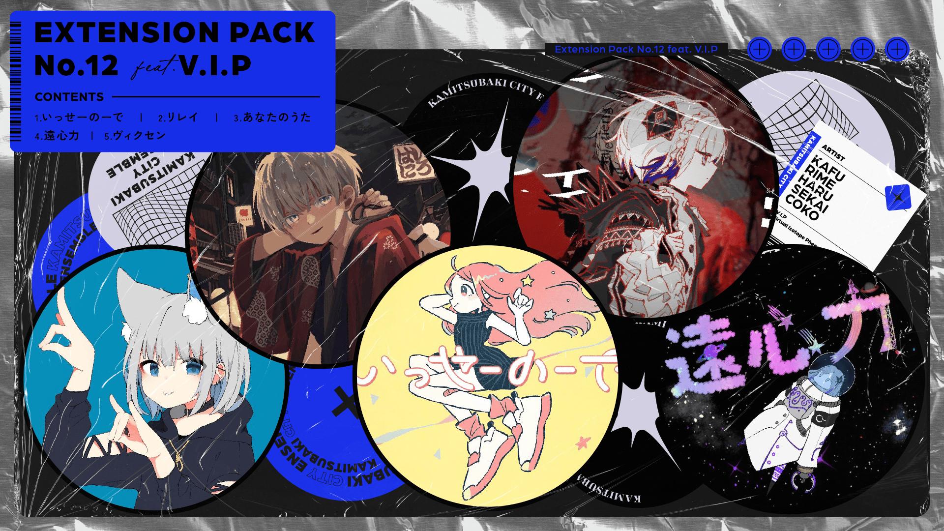 「Extension Pack No. 12 feat. V.I.P」には、 可不が歌う「いっせーのーで」や 星界 の「遠心力」など、バーチャルアーティストグループ・V.W.Pのメンバーの声を元にした人工歌唱ソフトウェアによるグループ・V.I.Pの楽曲を収録。