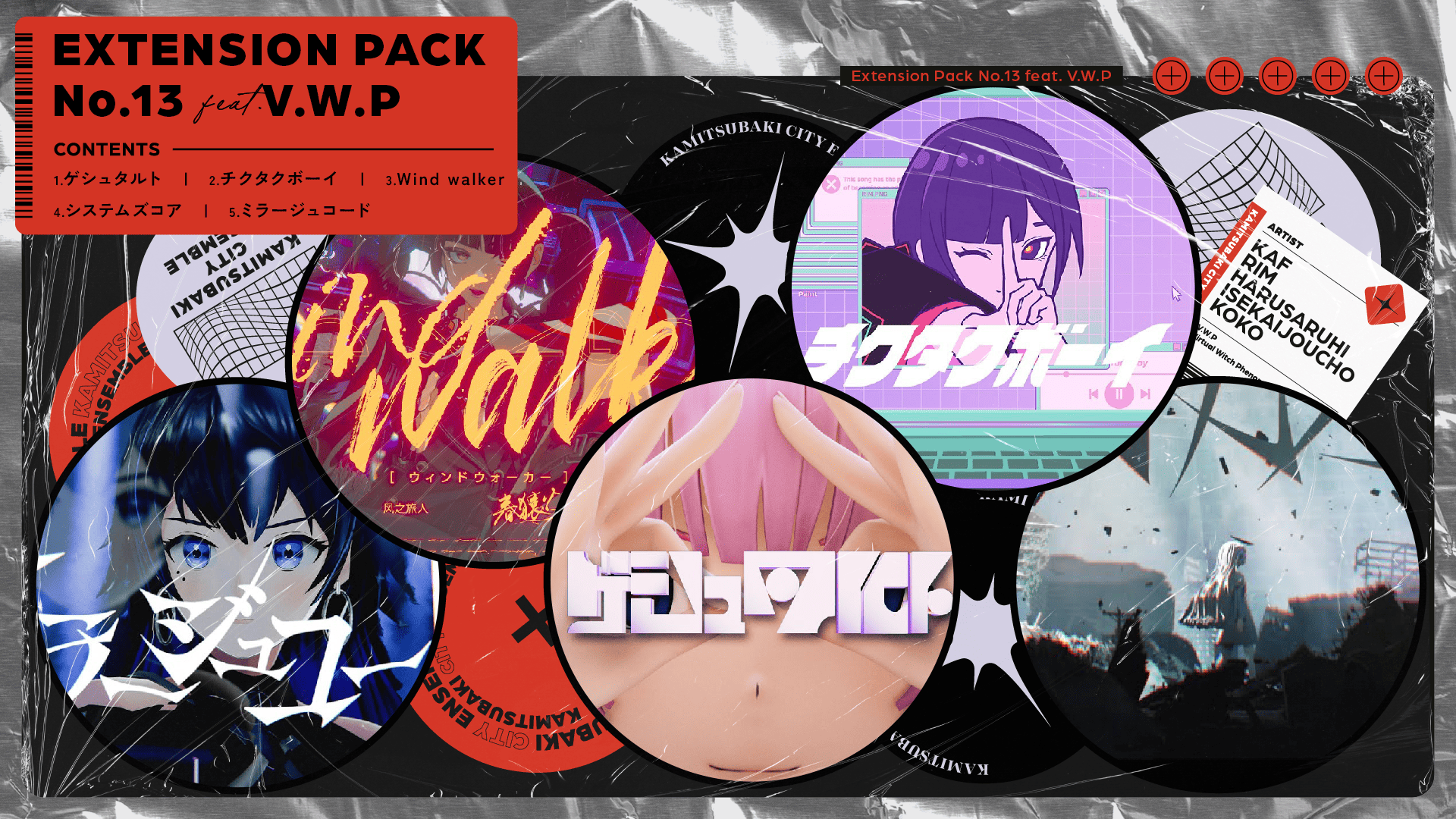 「Extension Pack No. 13 feat. V.W.P」には、 ヰ世界情緒の「システムズコア」や 花譜の「ゲシュタルト」など、V.W.Pのメンバーの楽曲が収録されている。