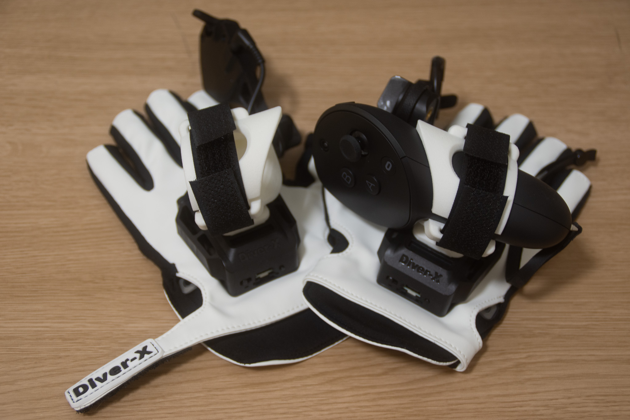 今回はDiver-Xにお借りしたハンドトラッキング用デバイス「ContactGlove2」に拡張モジュール「Magnetra2」を装着し、手の位置を取得するためのトラッキングにMeta Questのコントローラーを使用する専用アダプターを使い、「Quest Pro」を用いて使用するという環境の実機レビューを行う。