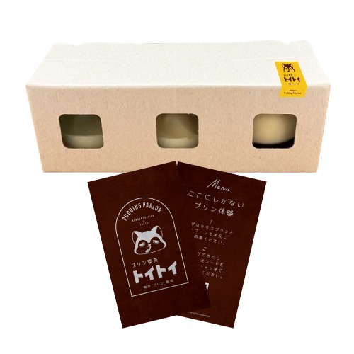 商品内容: プリン3種類(各1個)・プリン体験専用ボイスカード