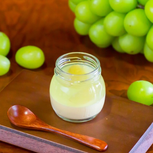 ・シャインマスカット:ぶどうシロップ漬け(ぶどう(シャインマスカット(岡山県産)、砂糖)、生クリーム(乳成分を含む)、牛乳、加糖卵黄(卵を含む)、砂糖、洋酒/ソルビット、ゲル化剤(増粘多糖類)、香料、酸味料、着色料(紅花黄、クチナシ)