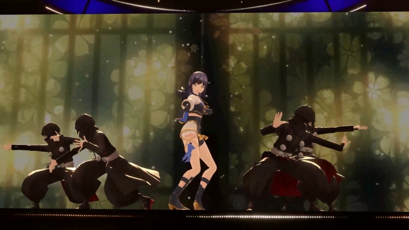 3曲目、最初のソロとしてステージに残ったのは、先斗さん。忍者装束姿の4人のダンサーを左右に従えて、REOLの「宵々古今」を披露した。祭り囃子のような和風テイストの強いダンスポップに乗せて、以前から定評のあるキレキレのダンスと伸びやかな歌声を披露していく。