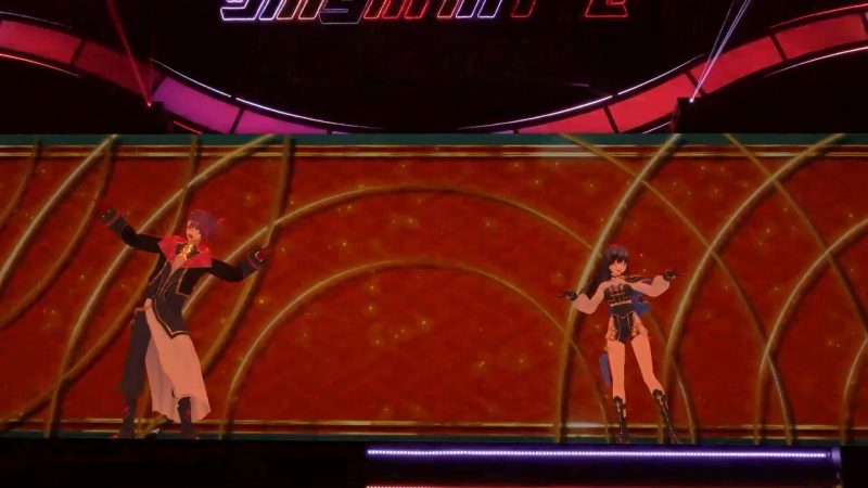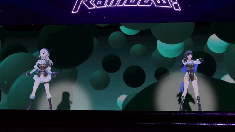 緑仙さん、葉加瀬さん、先斗さんによるMCの後、9曲目は、緑仙さんと渡会さんがキタニタツヤの「聖者の行進」をカバー。サビでは、二人が向かいあって目を合わせながら、競い合うようにテンションを高めていく。シンプルな映像演出も含めて、ここまでの曲の中でも特にカッコ良さに振り切ったステージだった。