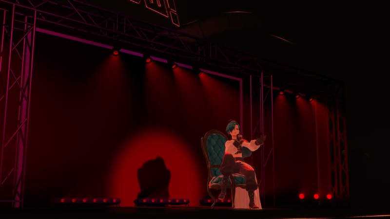 10曲目では緑仙さんが、ちゃんみなの「ダリア」をカバー。低音から高音まで幅広く歌いこなし、ピッチも正確な上に声量があってパワフル。何より魂のこもった感情を揺さぶる歌声が魅力的なにじさんじを代表するボーカリストは、圧倒的なパフォーマンスで観客の心を揺さぶってくる。椅子に座ったり、床に座り込んだり、ステージを左右に歩き回ったりしながらも、歌声は一切乱れることがなかった。そのパフォーマンス力でも、広い交友関係でも、きっと名古屋公演メンバーの中心となっていたであろうことは、想像に難くない。