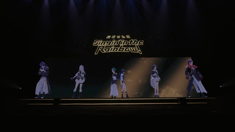 「にじさんじ」7周年記念プロジェクト楽曲「Arc goes oN」のイントロと共に少しずつステージが明るくなると、通常衣装姿の6人の後ろ姿が見える。スポットライトに照らされながら順番に振り向いた後、全員が一斉に光の玉に包まれて衣装チェンジ。