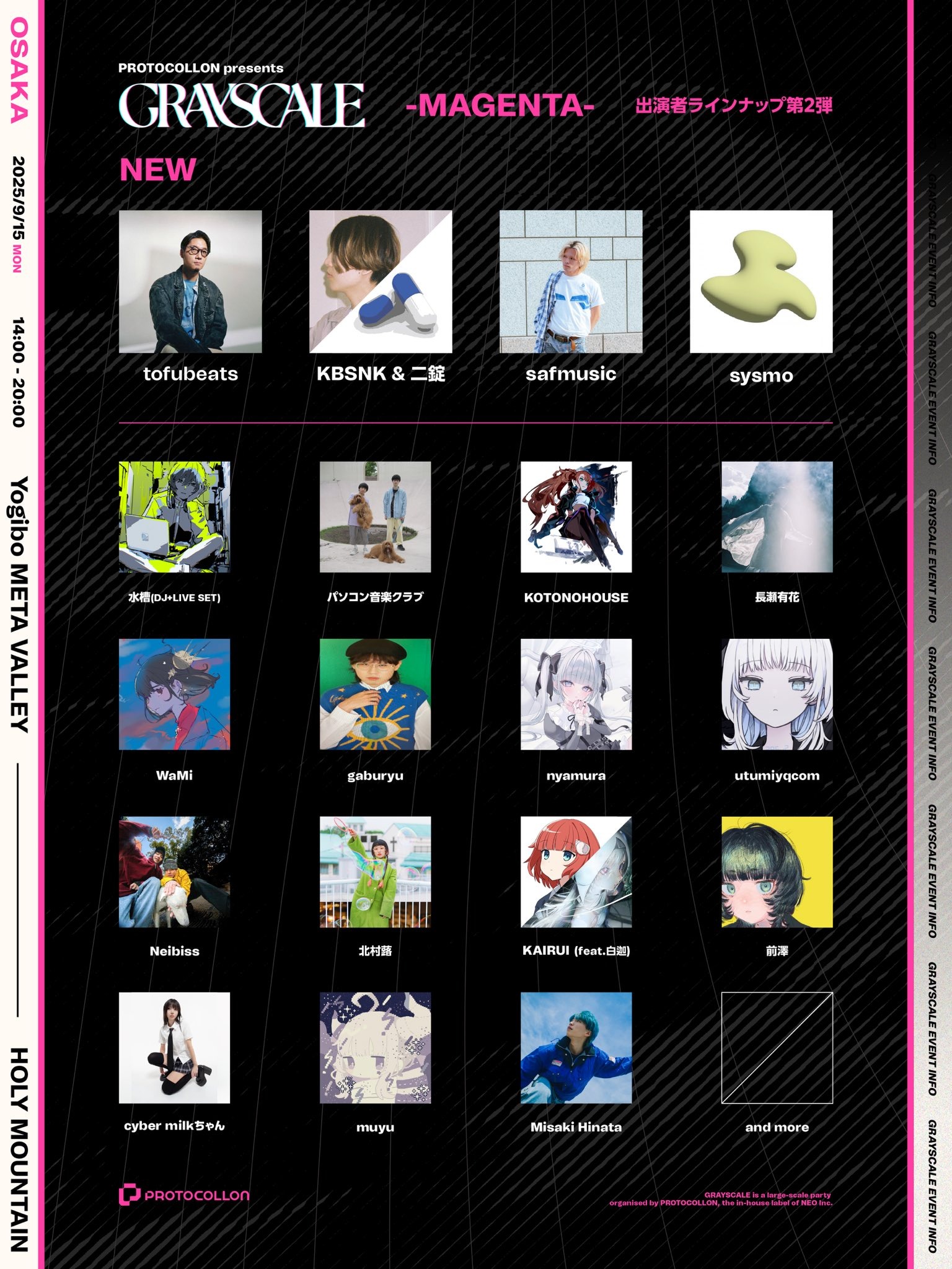ライブクリエイティブチーム PROTOCOLLONが主催するパーティ「GRAYSCALE」にVESPERBELL、長瀬有花、WaMiらが出演することが発表された。