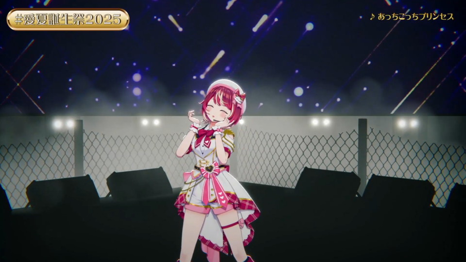 アイドルデビューして、好きなことを好きと言っていい、そのままの姿でいいと自信を持つことができたという灯里さん。幼少期は周囲の目を気にしてかわいいものが大好きであると言えなかった彼女が、プロデューサーに「かわいい愛夏が大好き」と言われることで、「世界で一番『かわちいアイドル』は、プロデューサーさんが『かわいい』って言ってくれる。私、灯里愛夏です!!!」と宣言。そして、灯里さんの2ndソロ曲、「あっちこっちプリンセス」を披露。「まなカワイイ」と連呼する姿に、プロデューサーもコールで応えるのであった。