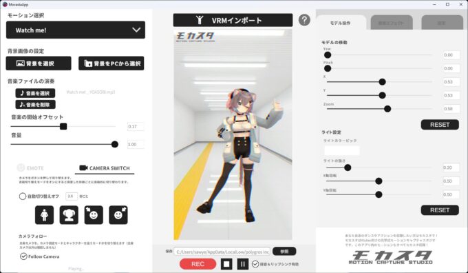 モカスタアプリは無料で誰でも使うことができ、話題になったショートダンスモーションが多数内蔵。各自が持っているVRMモデルを読み込むだけで、高品質なモーションを適用して、ショートダンス動画を簡単に作ることができるとのこと。