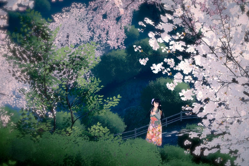 もっと深読みすると、満開の桜と新緑が並ぶことって現実にはあまりないバーチャルならではのことで、そこに時の流れみたいなことも表現されている。桜が今後もずっと続いていくように、このお着物も代々継いで残していけますようにという想いもこもっているかもしれません。過去と今と未来とという3つの事象が1枚に込められているのはスゴいなと感じます。