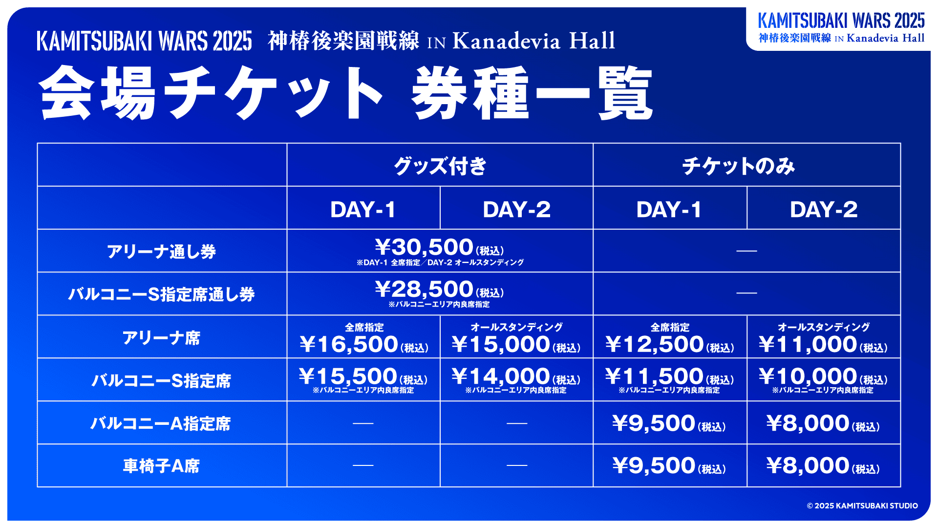 KAMITSUBAKI STUDIOは27日、ライブイベント「KAMITSUBAKI WARS 2025 神椿後楽園戦線 IN Kanadevia Hall」を2025年11月2日(日)・3日(月)の2日間に渡り開催することを発表。