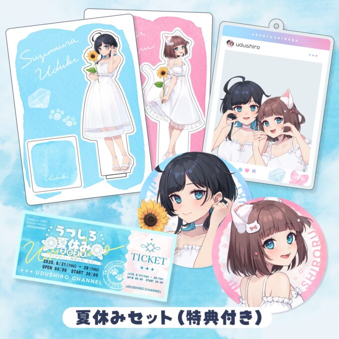 百合カップルVTuber「うづしろ(鈴村うづき×如月しろる)」が夏休みグッズを受注販売中 8月1日まで