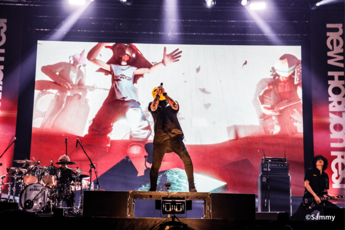 MAQUMAによる「Let’s go」を合図にKAMATAが疾走するようなビートを奏で、さらにバンドのグルーヴが加速し、icyの攻撃的なバースがさらに楽曲を彩り、早くもクライマックスの様相を呈していく。その勢いのまま飛び込んだサビでは、印象的な「アイヤイヤ」のシンガロングで会場が一体化するように声があがり、ボルテージは最高潮に。